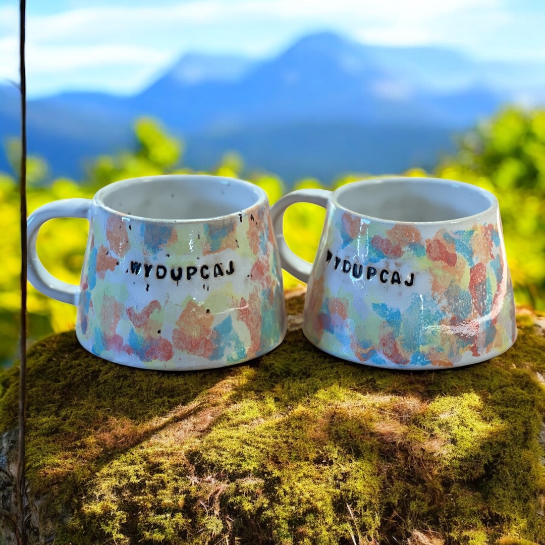 Każdy egzemplarz jest unikalny – pokryty kolorowym, pastelowym szkliwem i ozdobiony zabawnym napisem „WYDUPCAJ”, który zna każdy kto choć raz zawitał na Podhale 😉